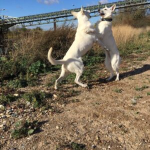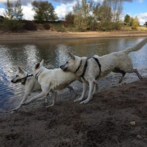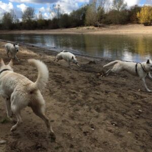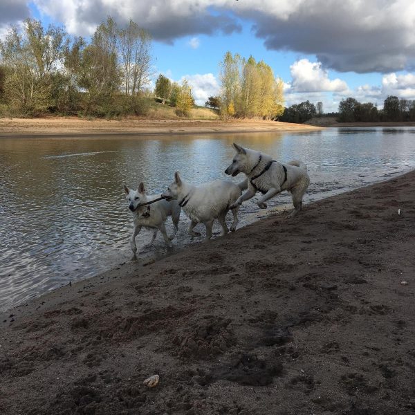 Fast alle waren der Einladung auch mit weiter Anreise gefolgt. Zusammen haben wir einen über 2 stündigen Spaziergang an einem Rheinarm unternommen. Die Hunde hatten so viel Spaß zusammen. Sie sprangen zusammen ins kühle Nass und rangelten miteinander. Die Besitzer tauschten gemachte Erfahrungen aus und es wurde viel gelacht. Es war einfach nur schön.