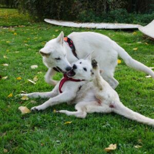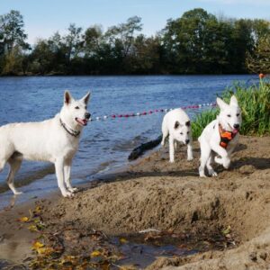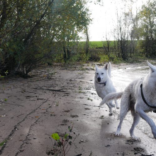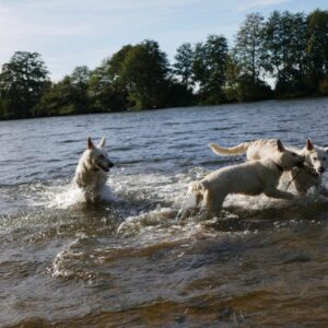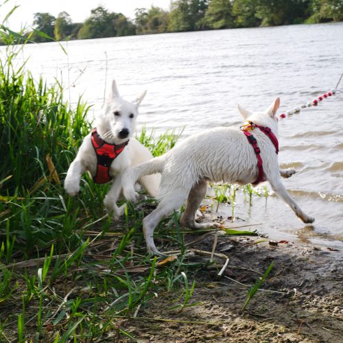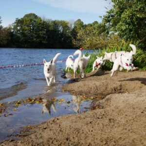 Am einem sonnigen Samstag (26.10.2019) war es endlich soweit! Alle waren eingeladen einen schönen Tag miteinander zu verbringen. Wir haben uns um 12.00 Uhr getroffen und haben zusammen einen Spaziergang an einem Rheinarm gemacht. Die Hunde hatten sehr viel Spass zusammen im Wasser 🙂 Gegen 14.00 Uhr sind wir dann zum Strandbad Millinger Meer gefahren. Dort haben die Besitzer des B-Wurfes auf uns gewartet. Da der B-Wurf erst 4 Monate alt ist war der 2 stündige Spaziergang zu lang für die kleinen Mäuse. Am Strandbad haben dann alle Hunde noch ganz ausgiebig miteinander spielen können und wir haben die Zeit genutzt unsere Erfahrungen auszutauschen. Wir haben wirklich einen ganz wunderschönen Tag miteinander verbracht 🙂 Ich freue mich schon sehr auf`s nächste Treffen im Oktober 2020!